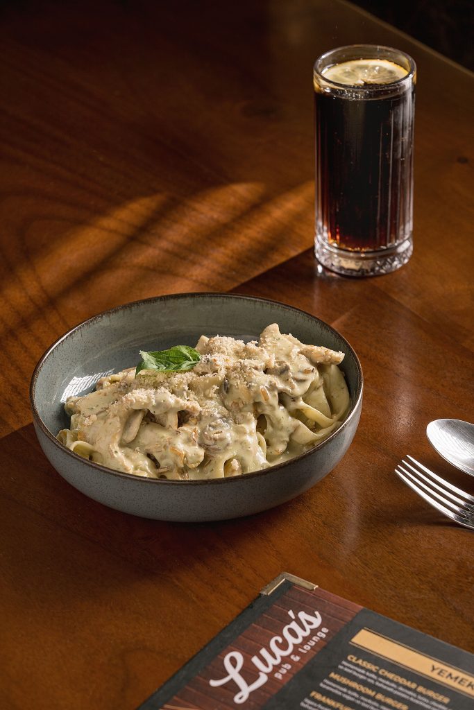 FETTUCINE ALFREDO İçindekiler:Handmade pesto sos, mantar, tavuk göğüs, krema, parmesan peyniri (alerjenler:laktoz, yumurta, gluten, fıstık) Fiyat: 400 TL